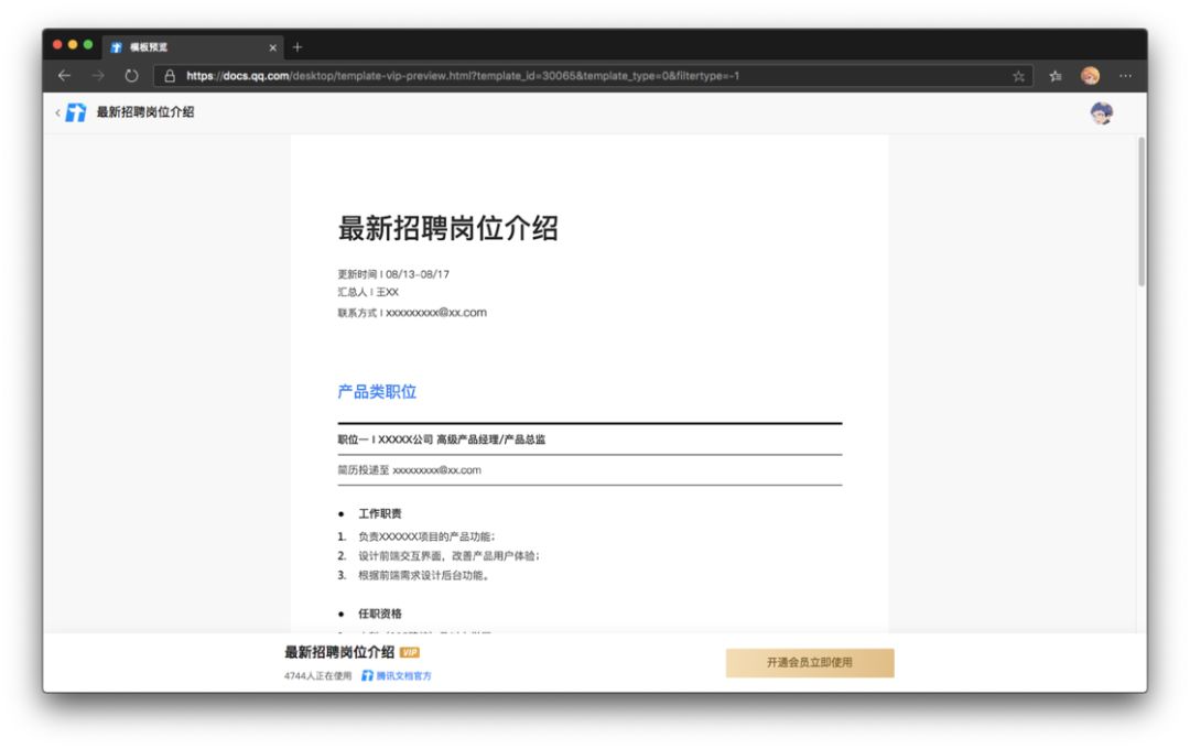 腾讯可以选择的模版数量较少,并且有一部分还需要办理 VIP 才可使用。
