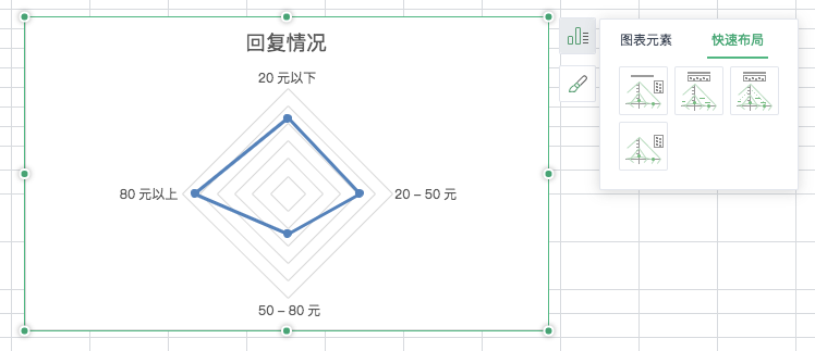 在可视化图表上,金山没有石墨的省份地图样式,但其对各类型图表提供的子项选择较为丰富,而且支持石墨没有的雷达图,实际的样式数量反而要来得更多。