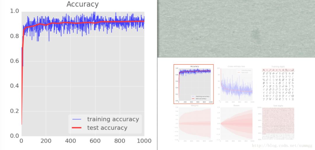 准确性只是正确识别的数字的百分比。这是在训练和测试集上计算的。如果训练顺利,你会看到它上升。