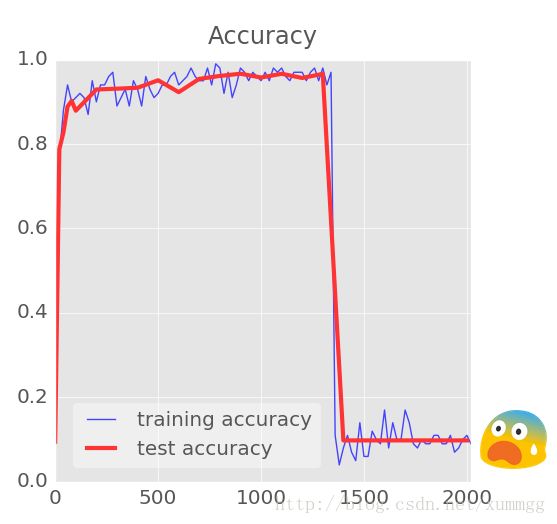 如果您看到准确度曲线崩溃,并且控制台输出NaN作为交叉熵,请不要惊慌,您正在尝试计算一个不是数(NaN)的值(0)。请记住,交叉熵涉及在softmax层的输出上计算的日志。由于softmax本质上是一个指数,从不为零,所以我们应该很好,但使用32位精度浮点运算,exp(-100)已经是一个真正的零。说白了就是,小数点后0太多,超出计算机精度,计算机将其判断为0,并作了分母,然后就出现这种现象。