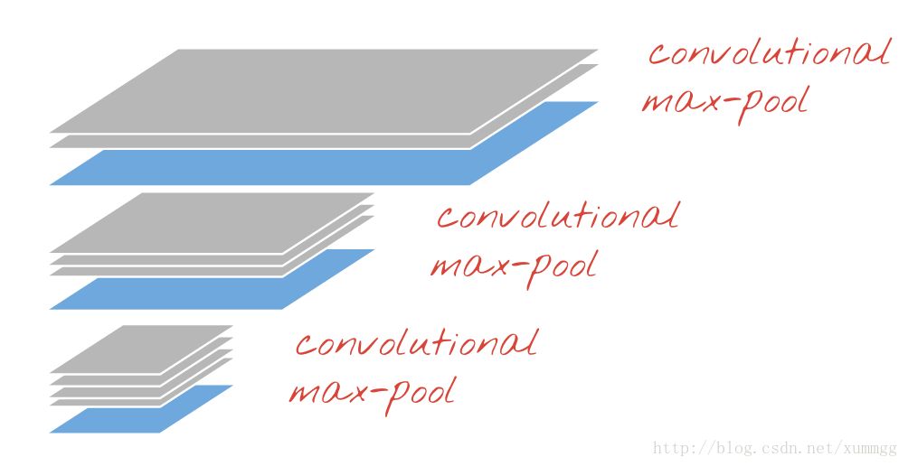 让我们建立一个手写数字识别的卷积网络。我们将在顶部使用三个卷积层,我们的传统softmax读出层在底部,并连接到一个完全连接的层: