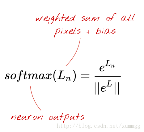 我们最后应用softmax激活函数,得到描述1层神经网络的公式,应用于100幅图像: