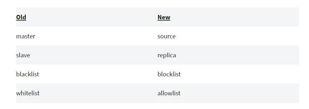 因此,我们看到不仅是 MySQL,多家公司和开源项目都在删除相似的术语: