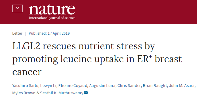 [1]LLGL2 rescues nutrient stress by promoting leucine uptake in ER+ breast cancer