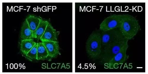 令人惊讶的是,研究人员还发现,尽管亮氨酸水平较低,但被诱导对Tamoxifen产生抗药性的细胞却能够生长。进一步研究表明,将亮氨酸运送到细胞中所需的细胞表面上的蛋白质(SLC7A5),在对Tamoxifen有抗性的细胞中存在较高水平。增加SLC7A5的水平,可以允许细胞吸收更多的亮氨酸,并且足以使乳腺癌细胞对Tamoxifen具有抗性。使用化学抑制剂抑制SLC7A5,足以使小鼠的ER+乳腺癌肿瘤缩小。Muthuswamy认为,抑制SLC7A5可能是治疗ER+乳腺癌的潜在治疗方法。