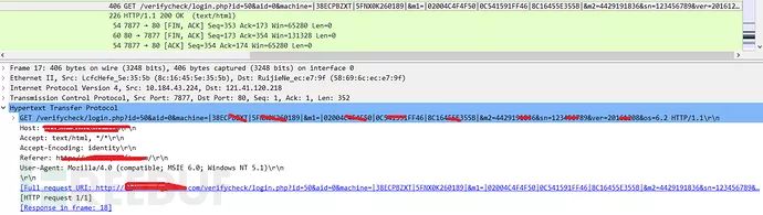可以看出客户端携带着我们的机器码和几个其他数据请求了服务器的/verifycheck/login.php