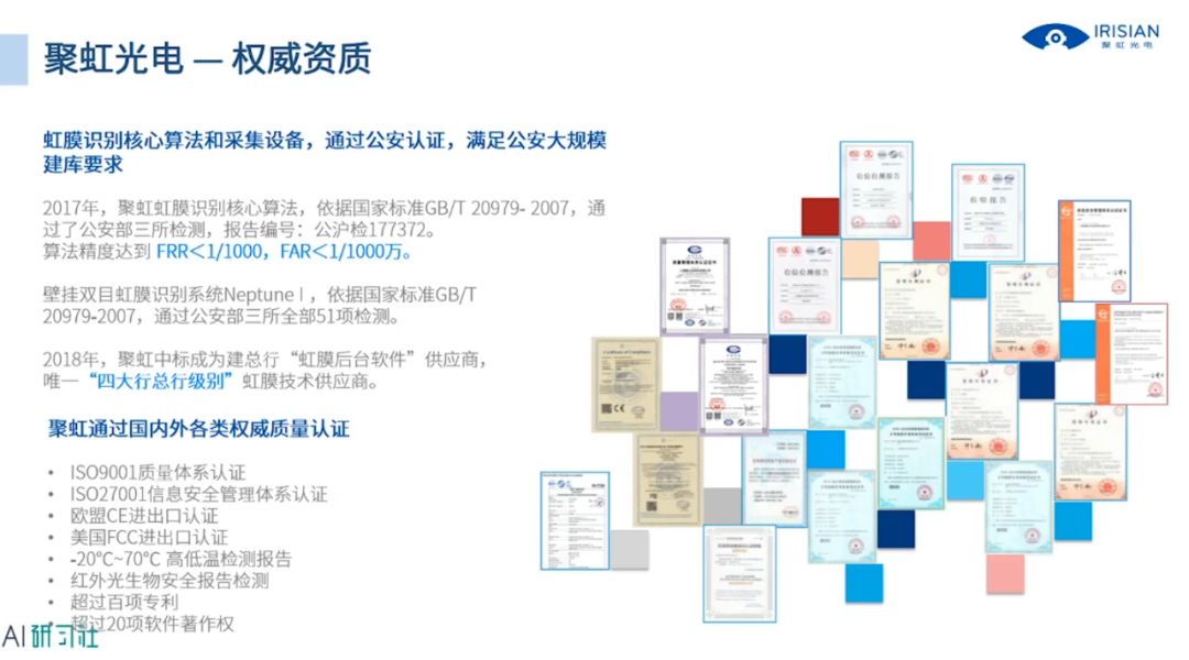 最后来看看聚虹光电的介绍,聚虹光电作为专业的虹膜识别算法公司,做了一些什么事情,我们在整个行业当中是怎样的地位,我们期望未来能达到一个什么样的高度。