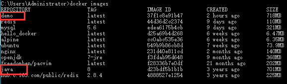 demo:latest :demo 表示镜像的名称,latest 表示版本号。