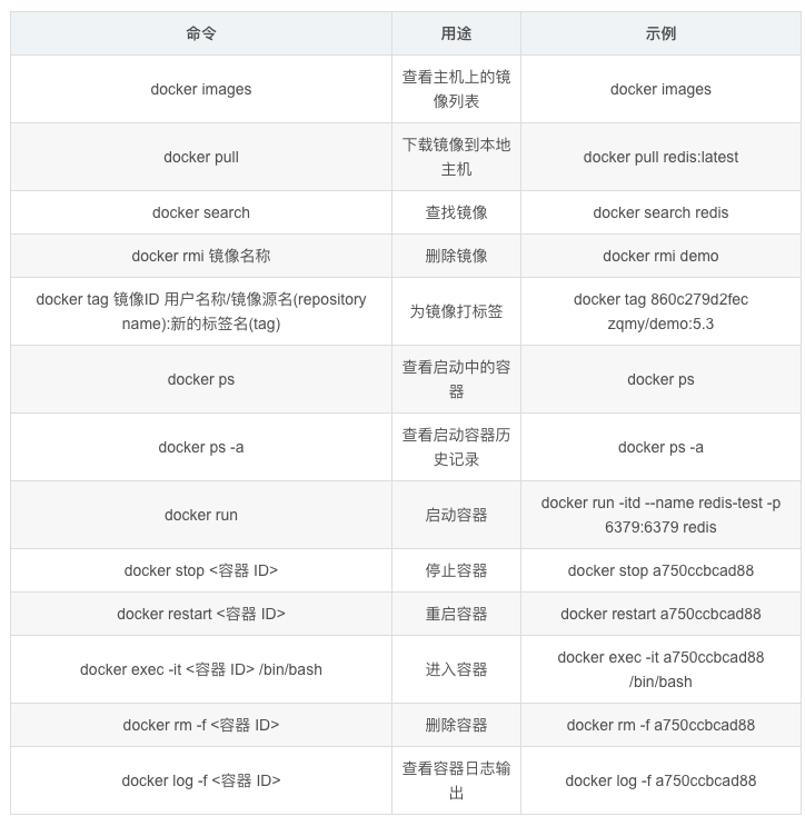 关于镜像、容器、Dockerfile 常用的操作命令如下:
