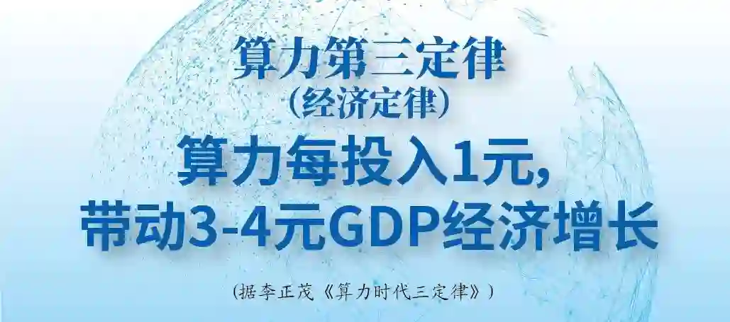 算力第三定律,即经济定律:算力每投入1元,带动3-4元GDP经济增长。全球各国算力规模与经济发展水平呈现出显著的正相关关系,算力规模越大,经济发展水平越高。算力在驱动社会和产业发生深刻变革的同时,也将产生显著的经济价值。据中国信通院测算,2016-2020年期间,我国算力规模平均每增长一个百分点,带动数字经济增长0.4个百分点、GDP增长0.2个百分点。从投入产出看,2020年我国算力产业规模达2万亿元,直接带动经济产出1.7万亿元,间接带动经济产出6.3万亿元,尤其是对制造、交通、零售、能源、农业等领域的经济产出带动作用较为明显。平均来看,算力每投入1元,将带动3-4元GDP经济增长,算力对经济产出的带动作用日益明显。