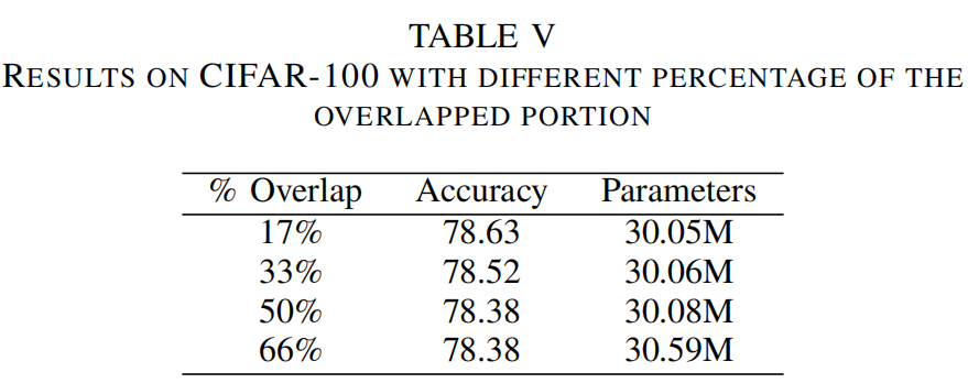 为了邻域信息传输,建议使用稍大且重叠的key。为了考察重叠区域的影响,作者用不同比例的key进行实验,如表5所示。从结果可以看出,随着比例的降低,在准确率方面的性能有所提高,这意味着在相邻的Windows之间只需要少量的信息交换就可以提高性能。此外,更少的重叠部分减小了序列长度,从而减少了参数和GFLOPs的数量。