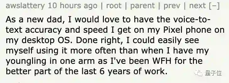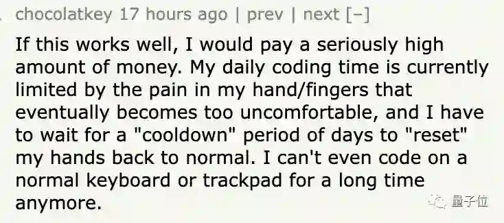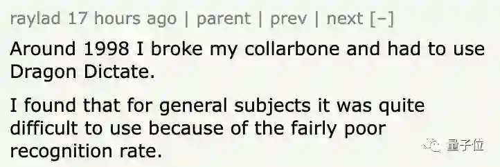 有位老哥表示,自己1998年摔断锁骨的时候,就想到用语音识别应用(Dragon Dictate)来尝试写代码,不过受限于当时的技术水平,效果不是很好。