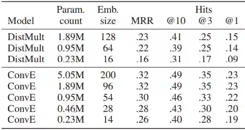 文章在4个数据集WN18、FB15K、YAGO3-10、Countries上进行实验,与DisMult、R-GCN等模型进行了对比。实验结果表明:0.23M个参数的ConvE就与1.89M个参数的DistMult有相近的性能表现,总的来说ConvE的参数效率是R-GCN的17倍以上,是DistMult的8倍以上。此外,作者还发现ConvE在YAGO3-10和FB15k-237上的表现比在WN18RR上好,因为前两者包含入度很大的结点,这种复杂的KG需要更深层的模型,而浅层模型比如DistMult则在较简单的KG上有优势。