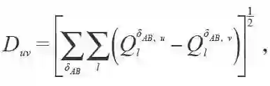 每一个结构可以通过这样的矩阵来表征。两个结构的相似度通过它们对应的成键特征矩阵之间的欧氏距离来判断: