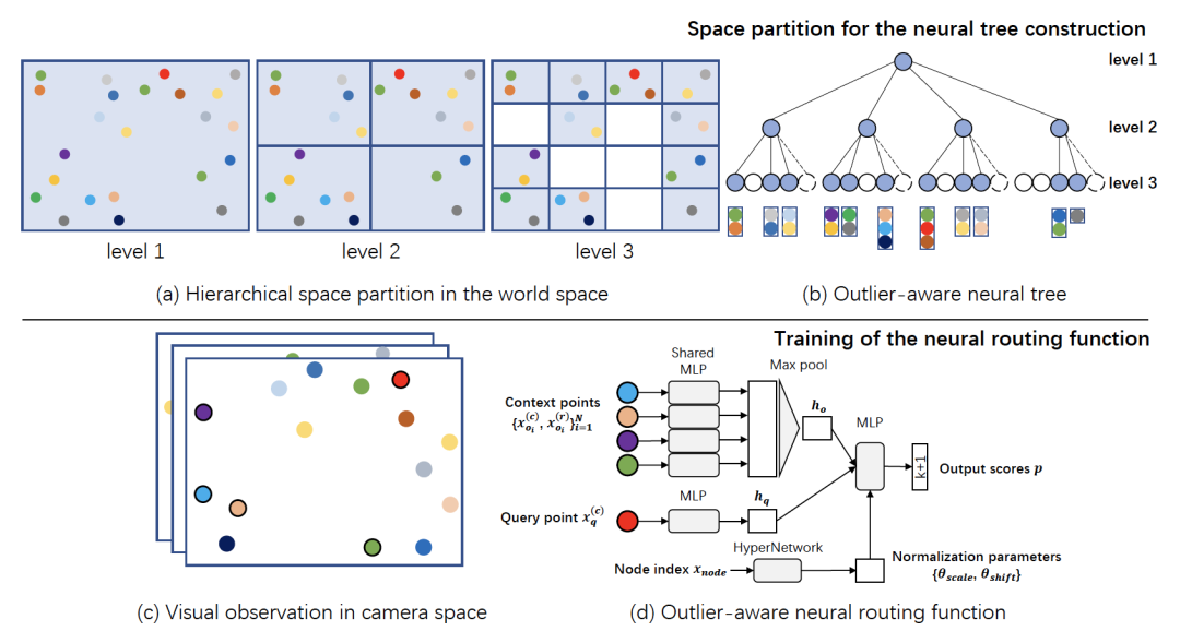 为解决上述问题,我们提出基于空间划分的神经路由算法 NeuralRouting。我们的直观见解是,场景中的动态变化通常表现为几何对象的三维位置改变。于是,我们从几何角度出发建模场景空间。