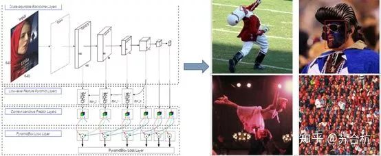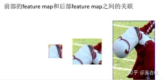 前部feature map对应的感受野如上图所示,图分辨不出是人脸还是其他物体,但是随着feature map感受野的逐步扩大,后面的图像可以看到这个区域是人脸。将不同尺度的feature map联合在一起进行训练,会检测出第一张人脸出来。