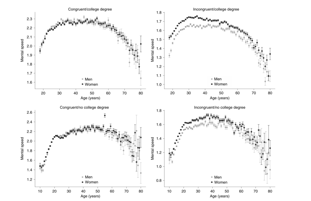 而思维速度的差异,只有在约 60 岁之后才会出现。