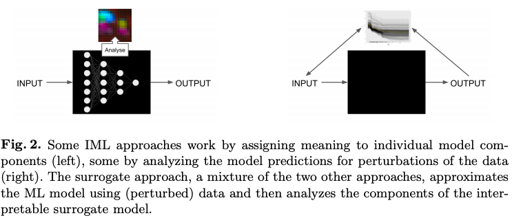 通常会通过分析模型组件,模型敏感性或替代模型来区分IML方法。