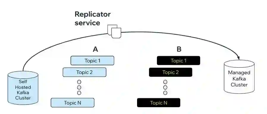 活跃的 Kafka 消费者在保证没有消息丢失和最小程度的重新处理记录的情况下,必须首先进行切换。唯一的方法是将所有消耗的主题记录从自己的主机集群复制到目标管理式集群。