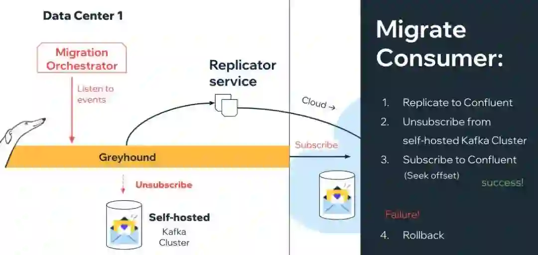我们利用 Greyhound 和专用编排服务和脚本,以便在实时流量期间以无缝方式实现自动、安全和逐步的迁移。