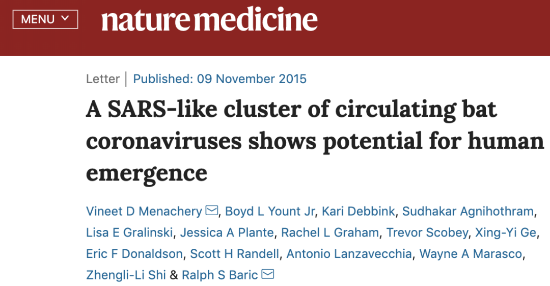 先是2015年发表于Nature论文被扒出:称中美科学家5年前,就曾制造出类SARS新冠病毒。