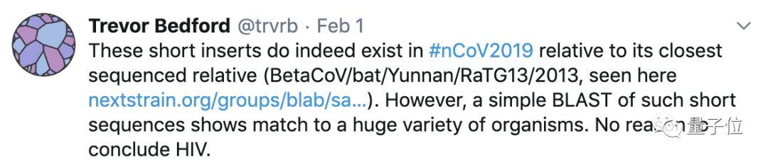 Trevor Bedford直接上数据反驳:论文中提到的四个原始序列在其它物种中也广泛存在,其中大部分甚至不是病毒。