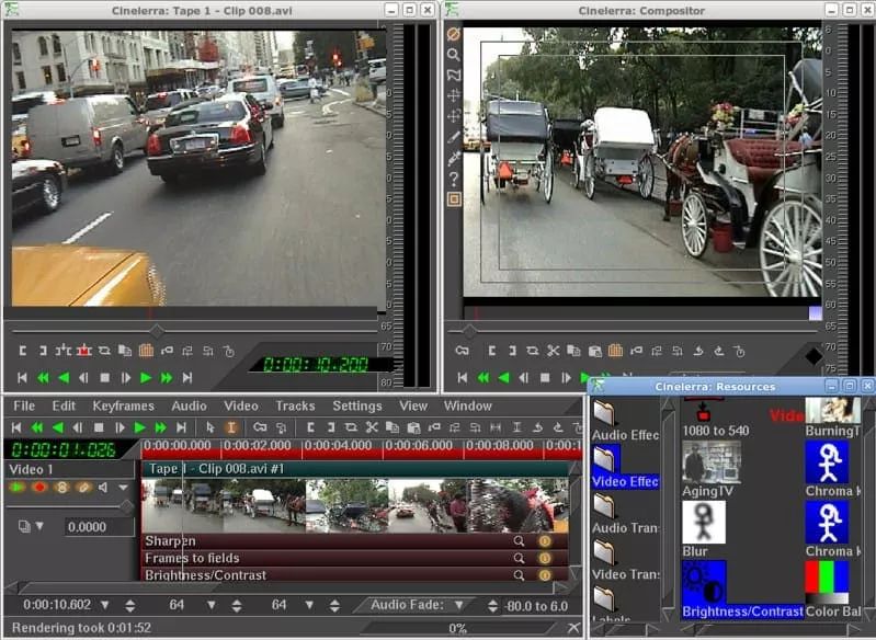 Cinelerra[28] 从 1998 年发布以来,已被下载超过 500 万次。它是 2003 年第一个在 64 位系统上提供非线性编辑的视频编辑器。当时它是 Linux 用户的首选视频编辑器,但随后一些开发人员丢弃了此项目,它也随之失去了光彩。