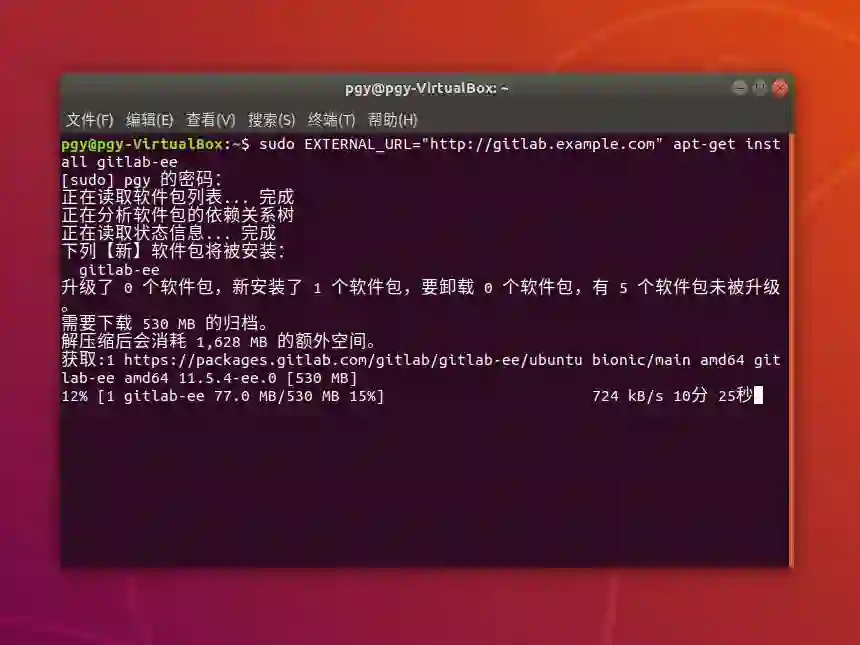 随后,使用以下命令即可开始安装,“http://gitlab.example.com”可替换成自己所需要的网址。