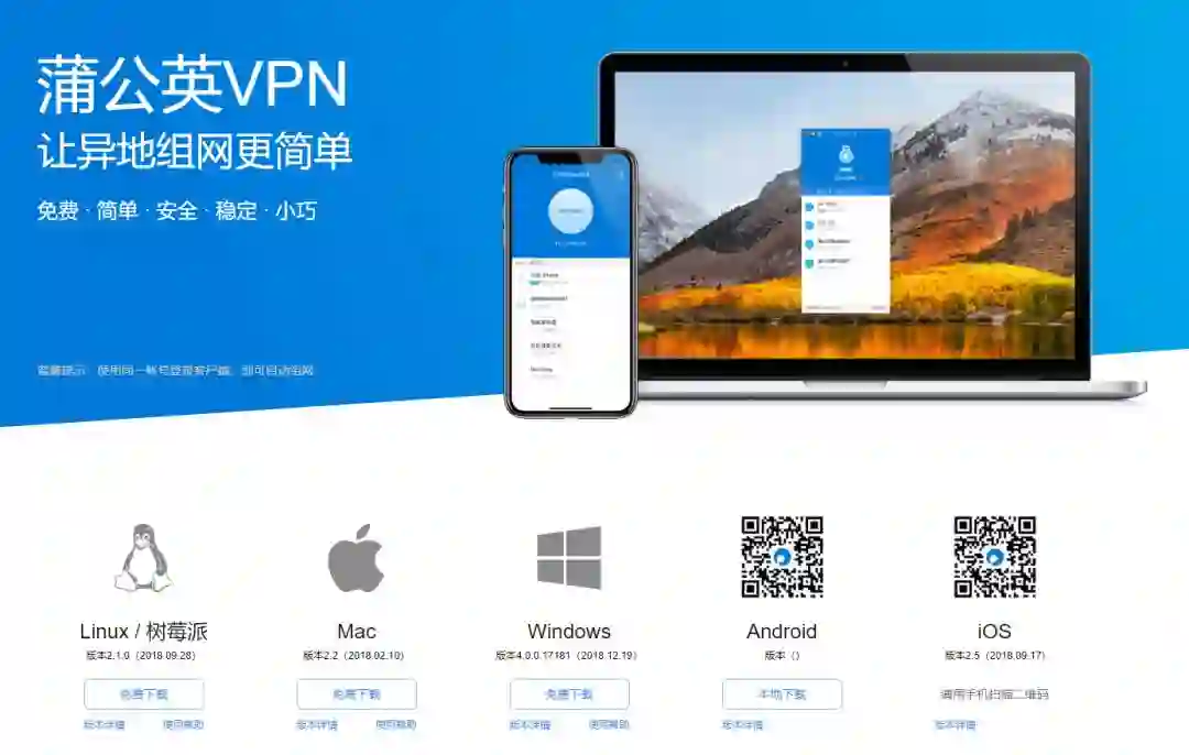 远程访问时,电脑、笔记本、手机只需下载对应的蒲公英客户端。