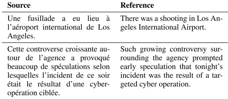 机器翻译就是将一种语言的文本翻译成另一种语言的文本,它是自然语言处理领域研究最多的任务之一。并且多年以来,已经为主流语言积累了大量的训练样本对,比如,WMT 2014 中的 4 千万对英语-法语句子对。下图给出了两个翻译样例。