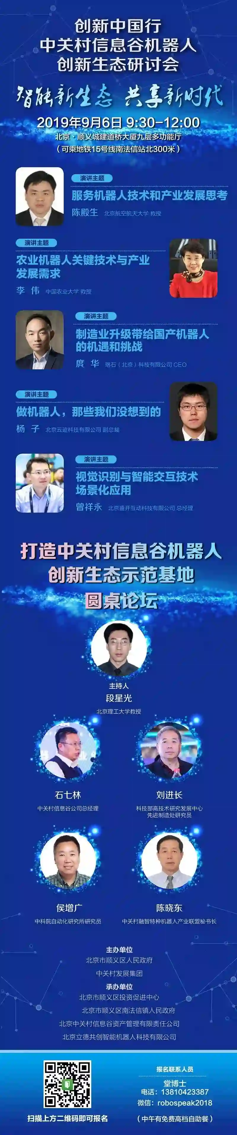 中关村机器人创新生态研讨会将于9月6日上午九点半在顺义举办,诚邀科技部高技术中心刘进长研究员、北京航空航天大学陈殿生教授、北京理工大学段星光教授、中国农业大学李伟教授、中科院自动化所侯增广研究员,以及珞石机器人、云迹科技、盛开互动等企业高层,围绕工业服务特种机器人重点产业,通过主旨报告、高端沙龙等形式深入分享。