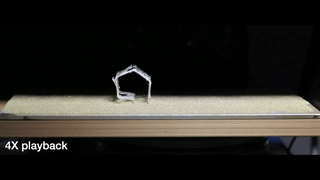 在没有变形前,它是一个大约8厘米长、4厘米宽的平板。当放置在热表面上时它首先会卷曲成五角形轮。