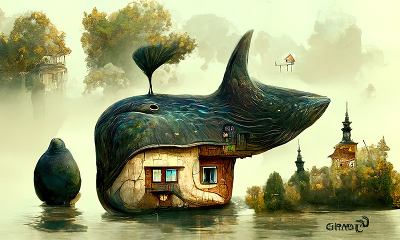 还有之前占据AI画画老大哥地位的Imagen,做了一副「有点怪,我再看看」的画。