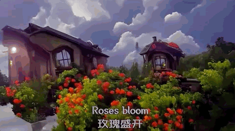 再来看,AI根据歌词「天空如同被雷鸣闪电划破、玫瑰盛开」填画的表现力也很不错。