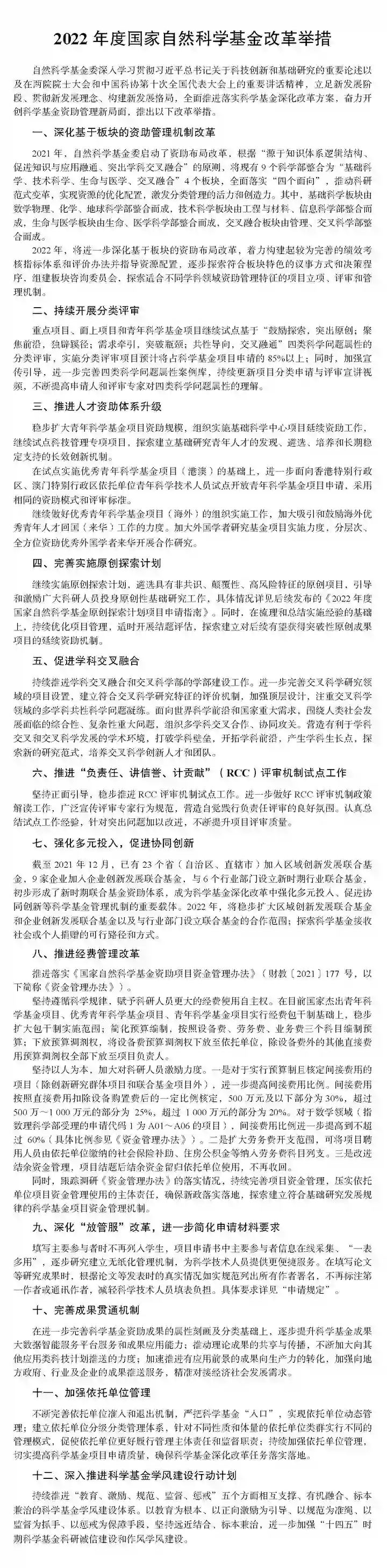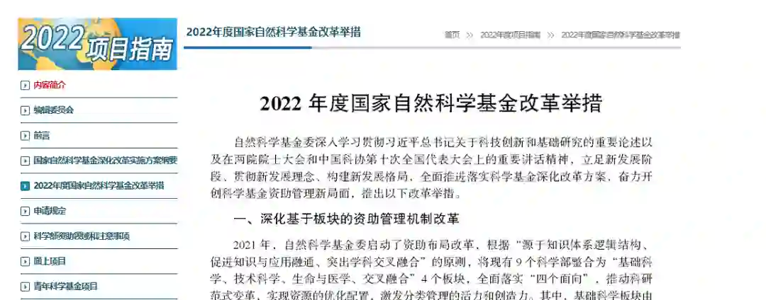 2022年度国家自然科学基金改革举措