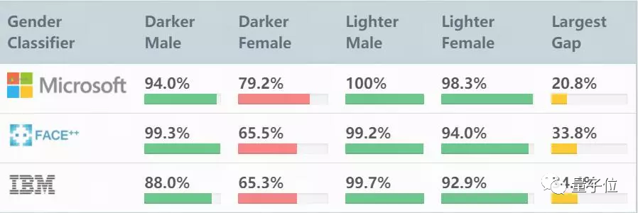2018 年Joy Buolamwini和Timnit Gebru的研究首次揭示了商业人脸识别系统(包括 IBM 的)的缺陷:人脸识别针对黑人、女性的错误率高达 21%-35%,而针对白人、男性的错误率则低于 1%。
