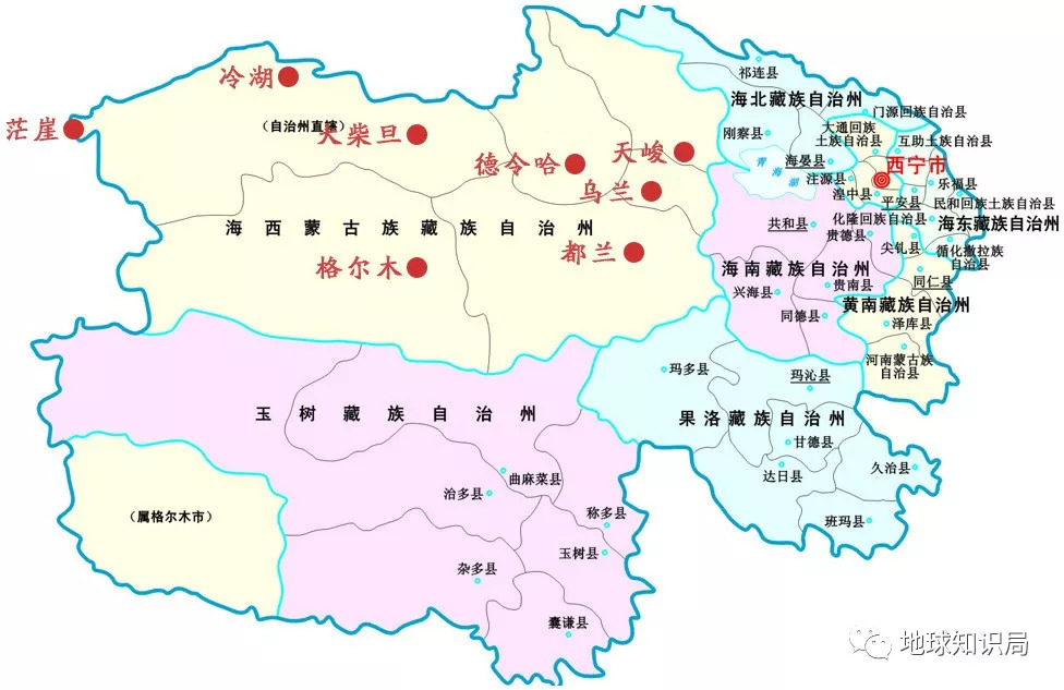今日的柴达木盆地主体位于青海省海西蒙古族藏族自治州境内,海西州是一个地级行政单位,幅员过大,拥有一对双子城,一个是格尔木市(海西州经济中心,县级),另一个是德令哈市(海西州政治中心,县级,也算是海西州的中心城区),除此之外还有乌兰、都兰、天峻三县。