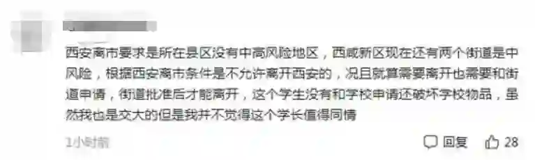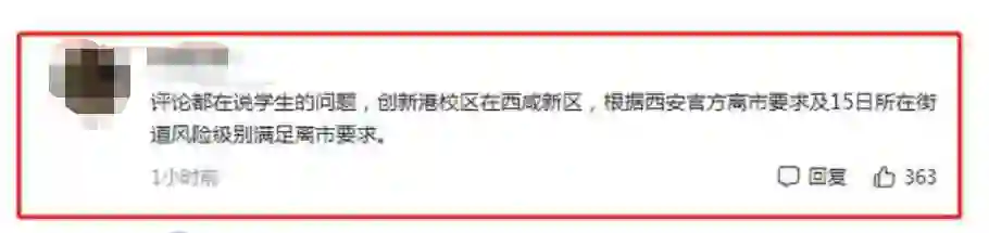 一部分人认为,创新港校区在西咸新区,满足西安官方离市要求及15日所在街道风险级别满足离市要求。