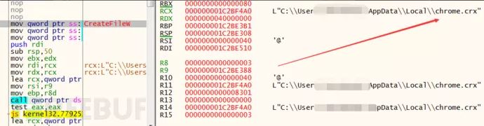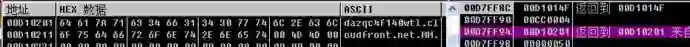 dazqc4f140wtl.cloudfront.net发送一个Get网络请求,并使用InternetReadFIle来接收网络文件数据流,请求域名藏在Shellcode的尾部。