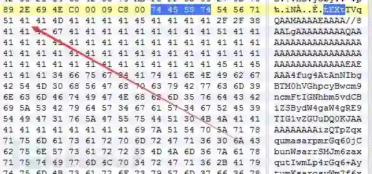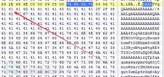 q.png文件tEXt+4位置指向了一个BASE64编码的PE文件内容开始位置.