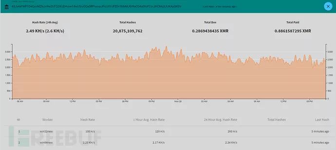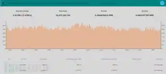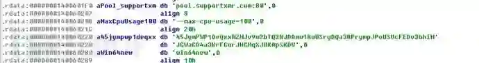 观察挖矿内部信息可知为挖矿端程序,矿池和钱包地址以明文形式存放。除此外,矿机程序还会访问执行