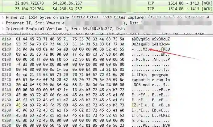 病毒Get请求后返回的明文PE文件数据流