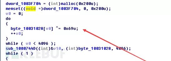观察该模块可知为Cobalt Strike生成的DLL后门攻击模块,该后门攻击模块数据交互支持HTTP、HTTPS、DNS和SMB隧道协议,本次样本使用HTTP协议的方式进行通信交互,后门攻击模块首先通过异或0x69解密出上线配置信息。