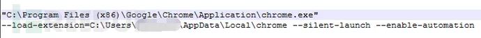 下图为安装插件包时的命令行,可知使用—silent-launch参数来隐藏浏览器窗口安装插件,观察插件相关的混淆js脚本代码可知,插件主要功能为替换虚拟货币交易时的收款地址,二维码信息。此外,还会窃取社交站点帐号密码,然后下载chm文档并上传到社交站点恶意的chm分享连接来进一步传播。