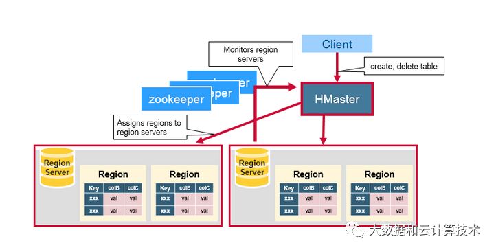 HRegion由HMaster分配到相应的HRegionServer中,然后由HRegionServer负责HRegion的启动和管理,和Client的通信,负责数据的读(使用HDFS)。