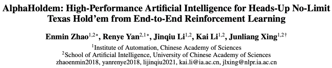 1. AlphaHoldem: high-performance artificial intelligence for heads-up no-limit poker via end-to-end reinforcement learning