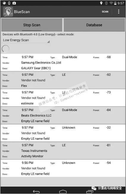 图1 BlueScan软件的“低功耗扫描”结果截图