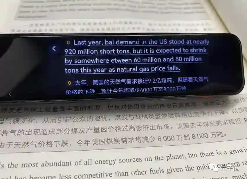 即使是大段文本,轻扫两下,这样的设备也能以毫秒为时间单位,给出逐句对照的翻译结果。