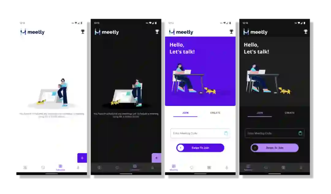 在设计师 Kinjal Waghela 的主导下,Meetly 的近期版本更新的重新设计采用了暗色主题优先的方法,使产品在整个界面的色彩应用上脱颖而出,传达了Meetly的身份,同时提高了在黑暗环境中的可读性。